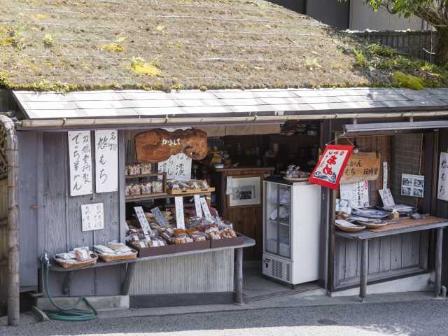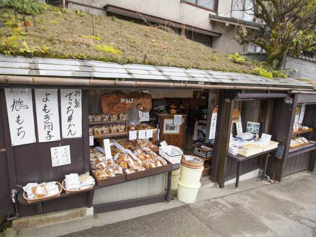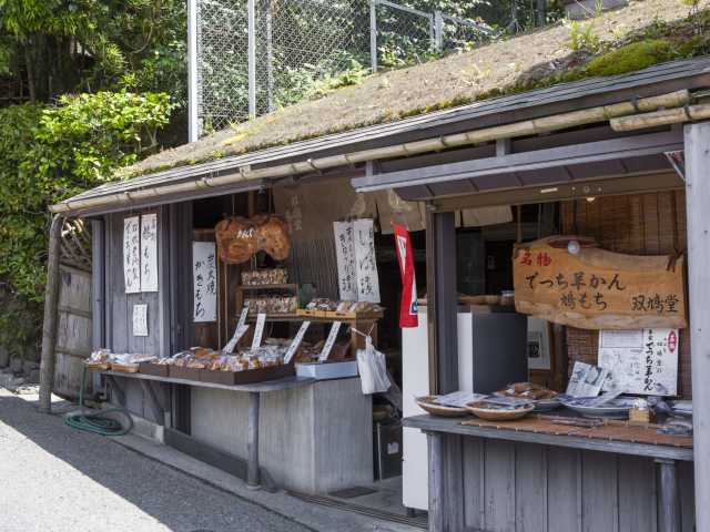 詩仙堂近くにある古い茶店。本店は修学院にあり、明治中頃の創業。名物の鳩もちは、もっちりとして昔ながらの素朴な味わいだ。