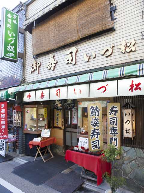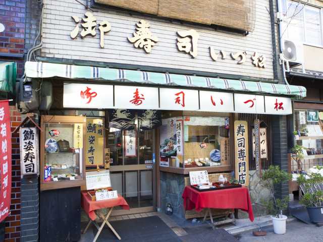 昔ながらの京都スタイルの寿司店。カウンター席はなく、メニューは箱寿司、巻き寿司、蒸し寿司、鯖寿司がメイン。夏には旬の鱧寿司が味わえる。地方発送も可能。