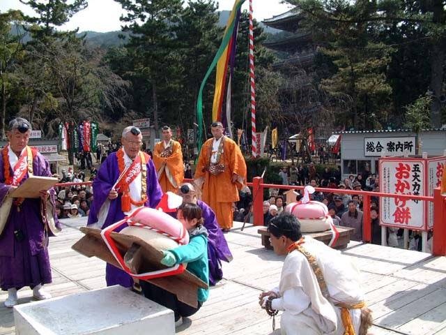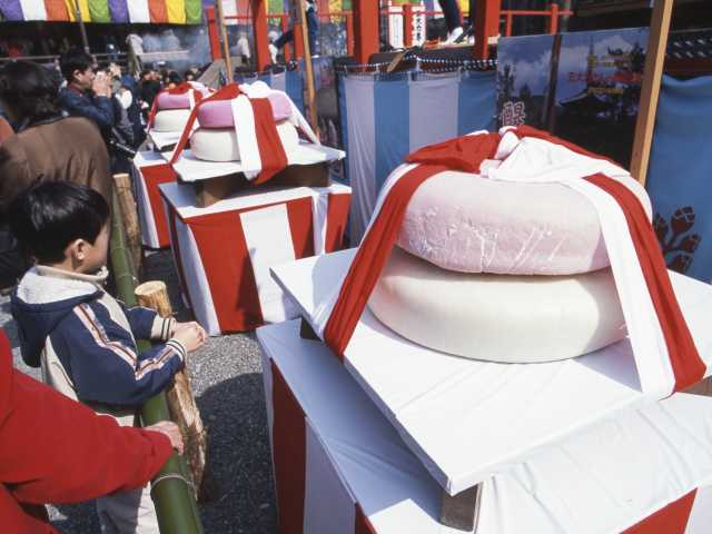 1100年あまりの歴史を持つ法要。巨大な鏡餅を持ち上げ力比べを行う「餅上げ力奉納」が催される。当日に限り盗難除け・災難除けの御霊符「御影(みえ)」が授与される。