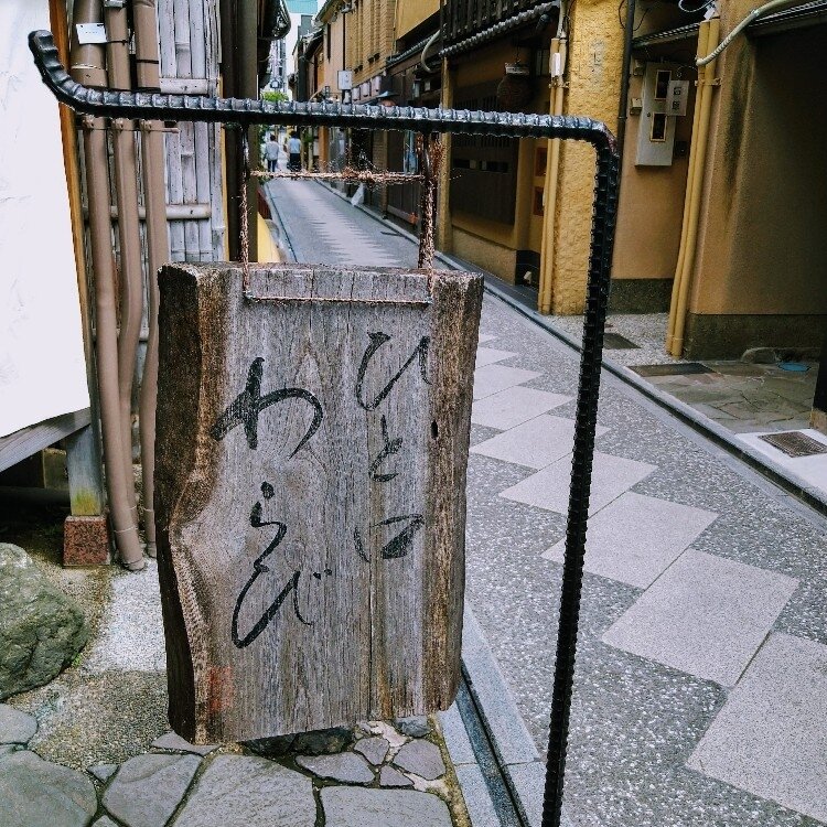 狭い先斗町に位置する和菓子屋。狭い路地に他のお茶屋、料亭と軒を連ねる。看板商品の「竹露」は細い竹の筒に水ようかんを流し込んだもの。冷たく爽やかな甘さがいい。