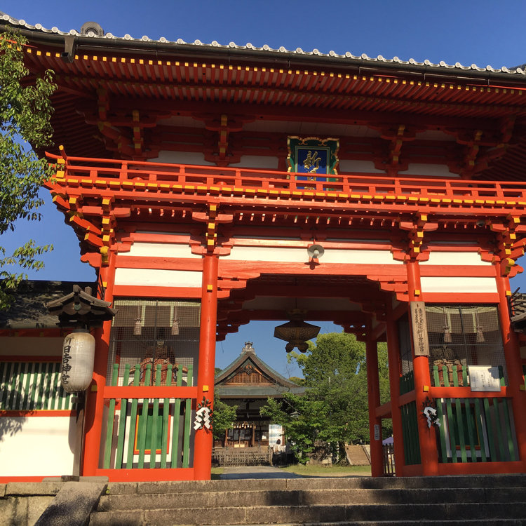本殿は京都最大級の流れ造りで、狛犬の換わりにサルがいる神社
