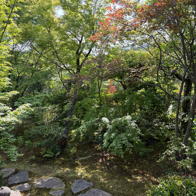 自然と歴史を伝える緑豊かな東山に位置。コンテンポラリージャパニーズをコンセプトにデザインの館内