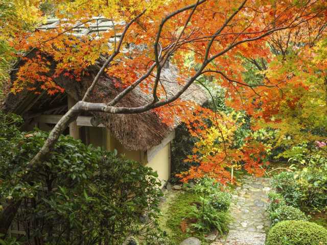 自然と歴史を伝える緑豊かな東山に位置。コンテンポラリージャパニーズをコンセプトにデザインの館内