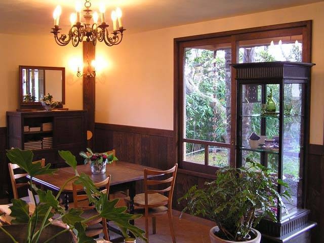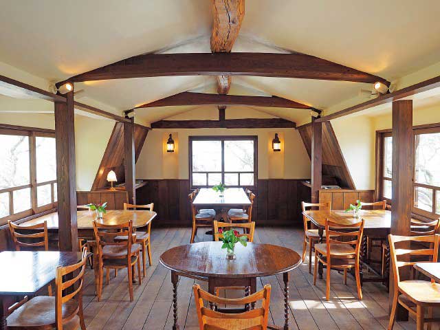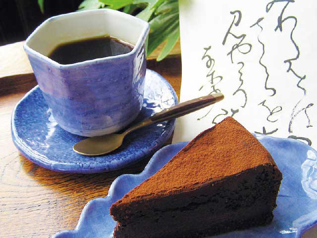 元東伏見宮家別邸料理旅館吉田山荘の敷地内にあるティーサロン。店内からは比叡山や街の景色が望める。「お福もちぜんざい」には十六穀米や餅玄米、小豆をたっぷり使用した餅が入っている。