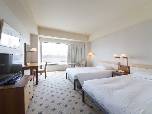 海をモチーフにした客室はすべてオーシャンビュー。明るいマリンブルーとベージュを基調にした爽やかさが魅力。U.S.J.へも近く観光・レジャーにも便利。