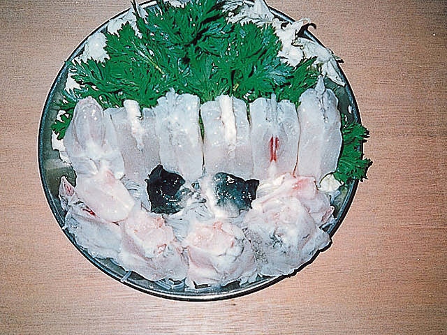 下関の南風泊市場に専用生け簀があり、新鮮なフグが空輸される。人気はもちろんてっちり。すだちの香りがさわやかな特製ちり酢が美味。一年中新鮮なフグが食べられる。