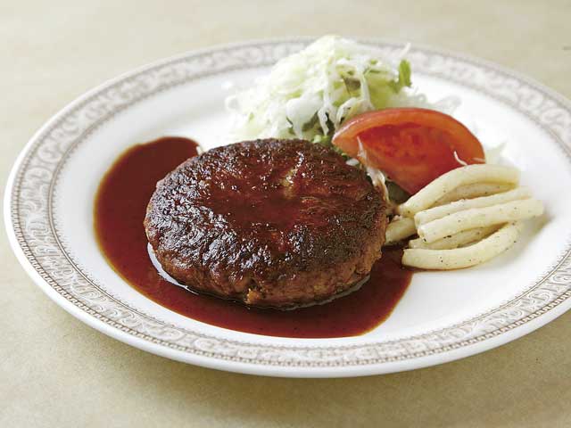 昭和8(1933)年創業。2週間かけてじっくり仕込むデミグラスソースなど、ていねいな仕事ぶりがうかがえる。ハンバーグとエビフライのセットなども人気。