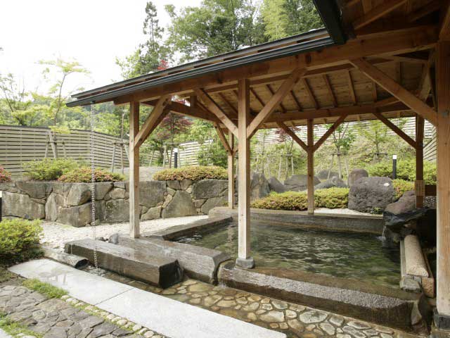 日本三美人の湯で有名な龍神温泉に似た泉質で、美肌作用が高いことから「乙女の湯」と命名。広い庭園の中に露天風呂があり、城下町文化を象徴する端整な造作と四季折々の眺めが風情を醸す。