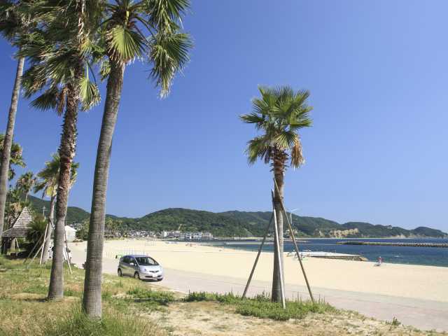 淡路島の南端、潮崎に近い海水浴場。シャワーやロッカー、駐車場が完備されている。近隣にはキャンプ場や青少年交流の家があり、真夏のアウトドアスポットとして人気がある。