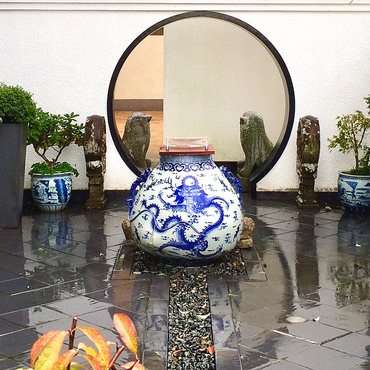 中庭にはかがり火の演出、廊下は畳敷き、ロビーで無料のコーヒー、サウナと水風呂あり。