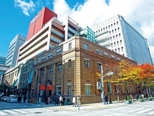 南側正面のイオニア式円柱など、アメリカン・ルネッサンス様式の重厚な意匠が目を引く。現在は多彩なショップやカフェが入る。名称の38番は、外国人居留地時代の区画番号。