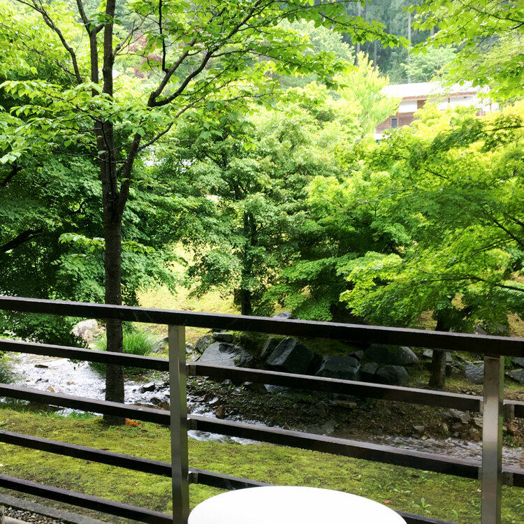 渓流沿い離れ戸建、源泉かけ流し眺望半露天風呂付、全室テラス付、食事は茶寮「心」にて