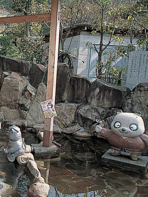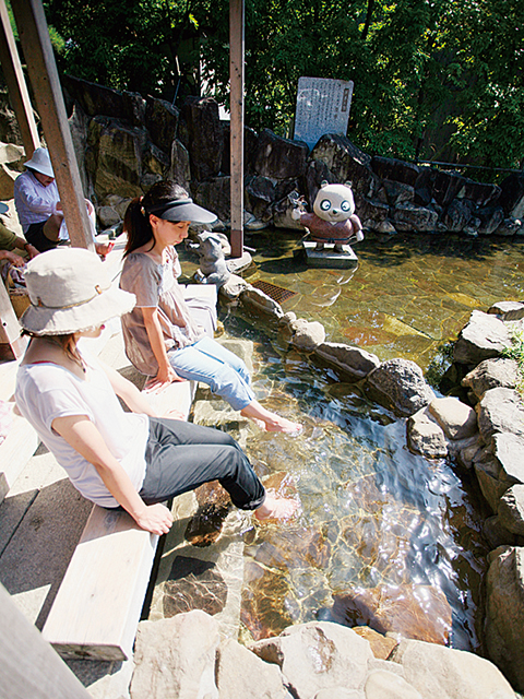 淡路島をかたどった湯床の中ほどで洲本の民話『柴右衛門狸』に登場する柴助のモニュメントが愛きょうをふりまいている。湯は単純弱ラドン泉の洲本温泉を利用、泉温は約35度で足湯に最適。