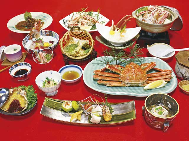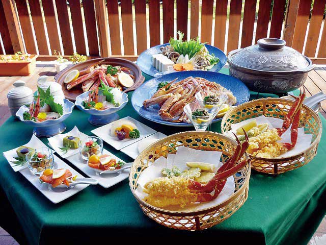 地元の食材を使った和会席、フレンチのコース(要予約)がおすすめで、冬期の松葉ガニも人気。バーベキューコーナーもあり、日本海の地魚が楽しめる。