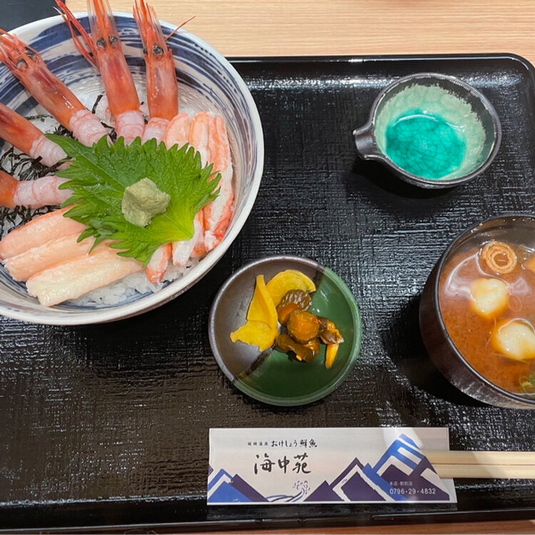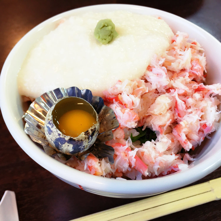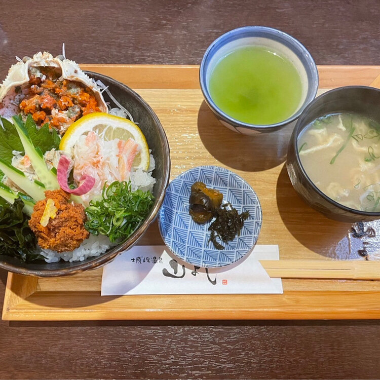 カニを使った料理や定食、丼などのメニューが豊富。カニの加工会社直営なので、通年味わえるカニメニューがあるのもうれしい。なかでも、店長考案のカニトロロ丼が人気。
