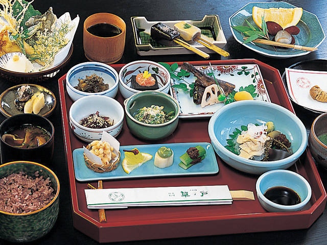 萱葺き屋根の旧家で、田舎料理が味わえる。おすすめは、奈良の伝統料理・茶飯に季節の野菜や山菜の煮物など約20品目が付いた万葉弁当や、季節の香りを盛り込んだ名物の風流弁当けんずい。