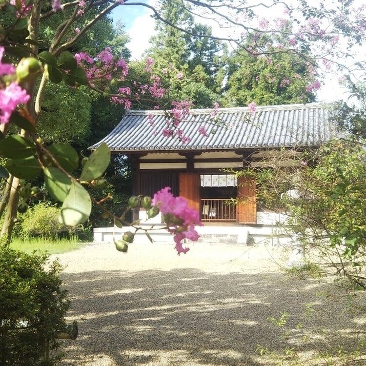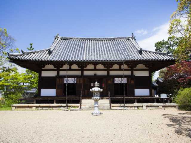 平城京の北東の隅にあったため、隅寺とも呼ばれる。遣唐使の航海の安全を願い、光明皇后により天平3(731)年に創建。金色に輝く十一面観音菩薩立像が本尊で、光明皇后がみずから刻んだという十一面観音像をもとに、鎌倉時代に慶派の仏師により造立されたもの。ユキヤナギの名所としても知られる。