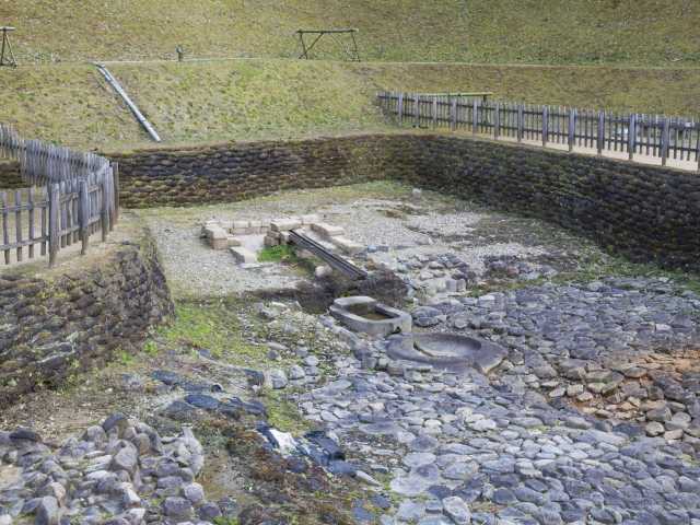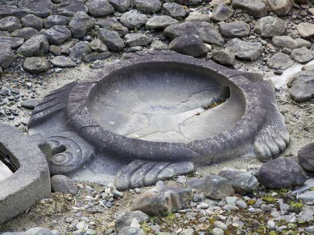 近年発掘され、話題をよんだ石造物。亀の甲羅の部分には、水をためるようなくぼみがあり、水を流す装置の一部だったと考えられている。
