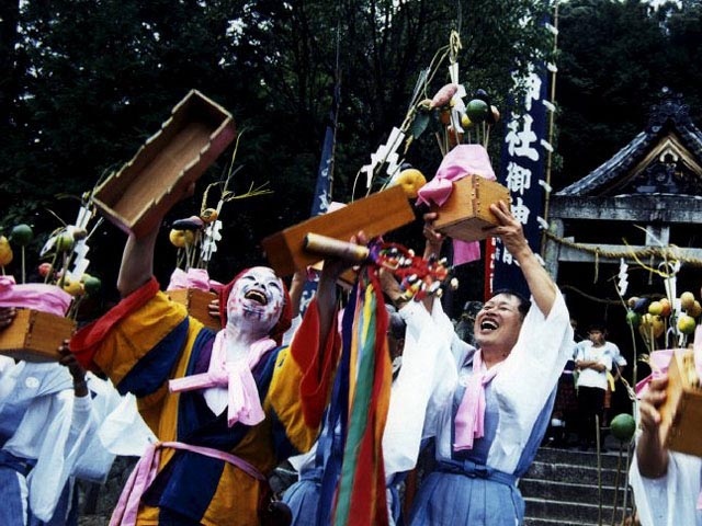 pin鬼の出会いは9:00~、獅子舞いは10:40~、笑い男登場は11:00~ (10月中旬の日曜)