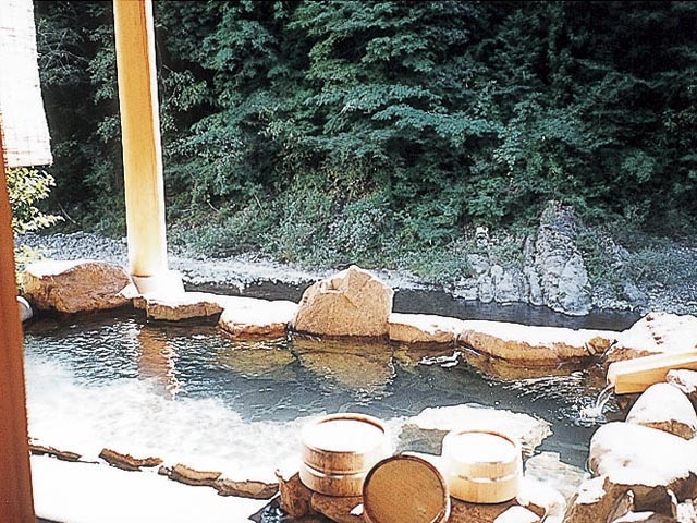 歴史を誇る宿ながら、アットホームなもてなしが魅力。日高川を見渡して湯あみが楽しめる槙風呂、瀬音が耳に届く貸切露天風呂を備え、ノスタルジックな湯宿の雰囲気が旅情を誘う。