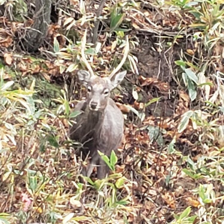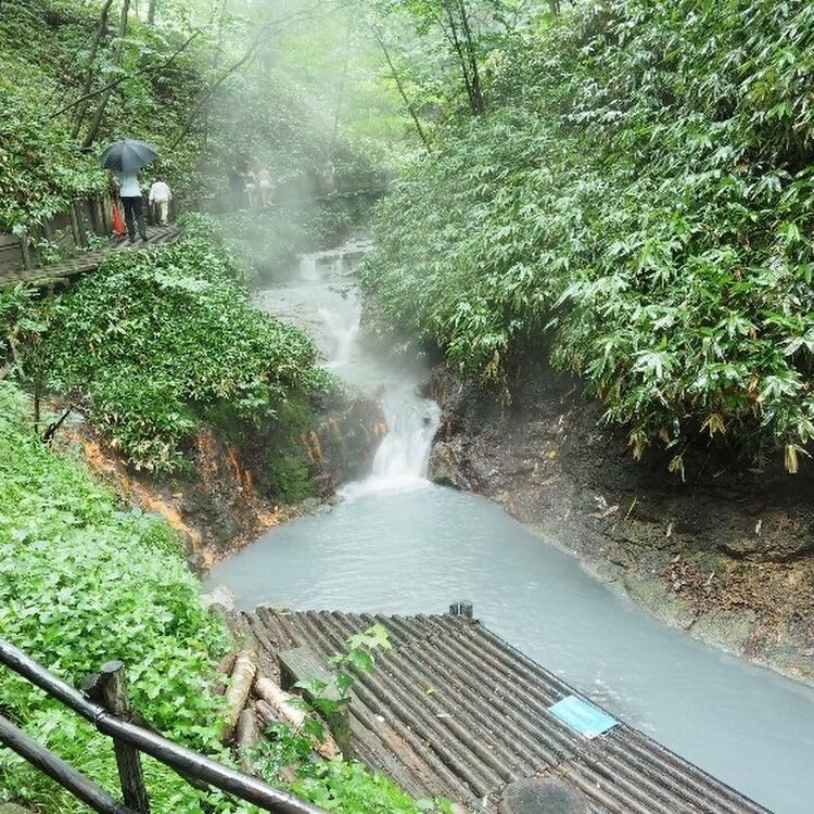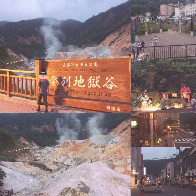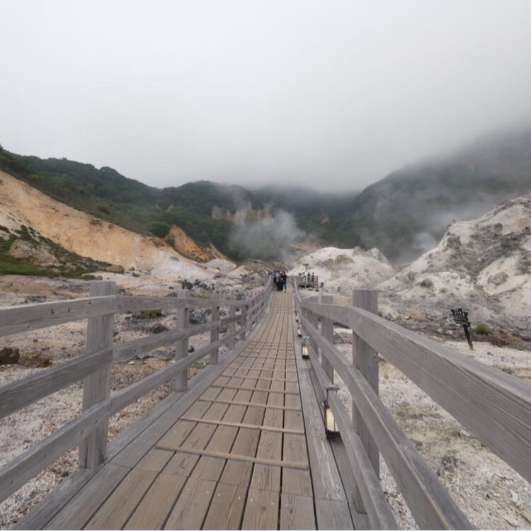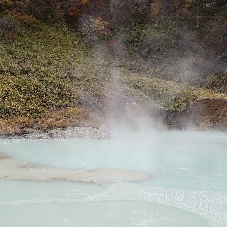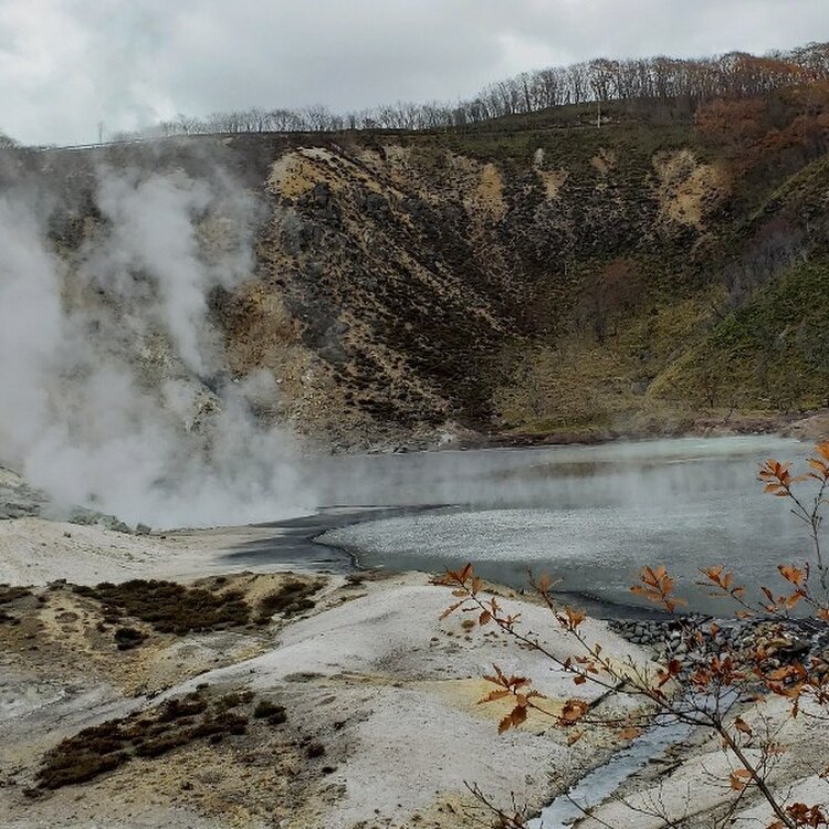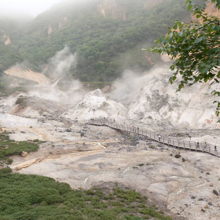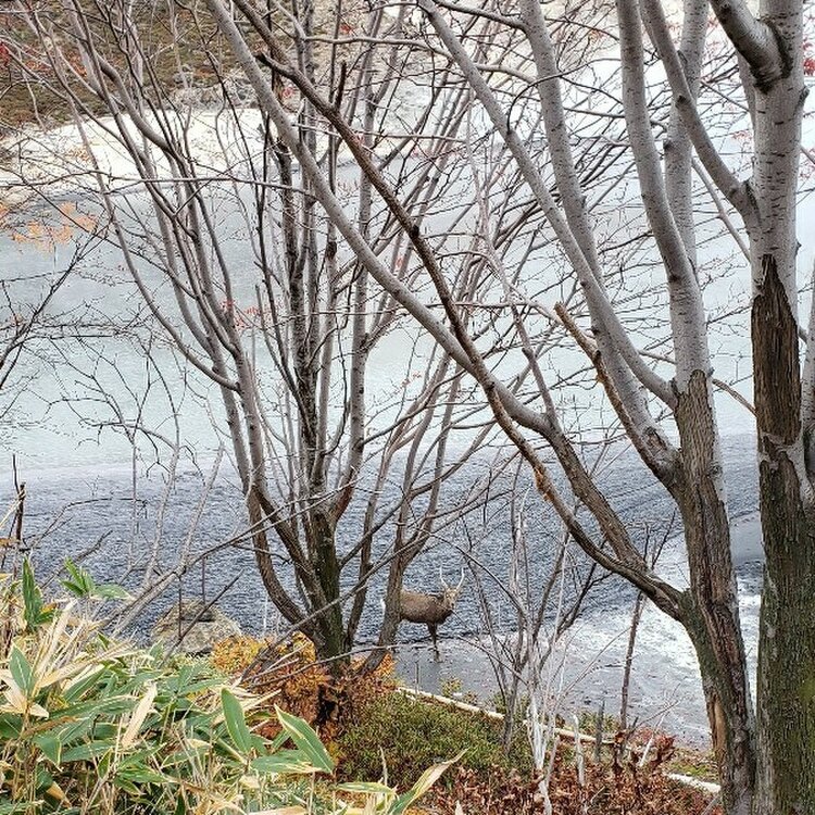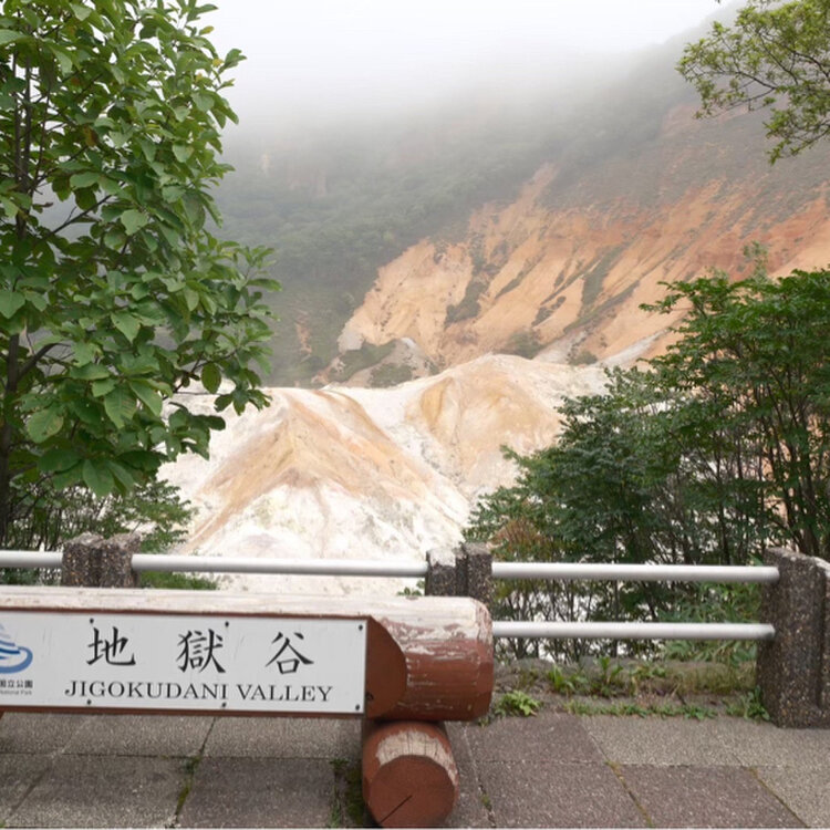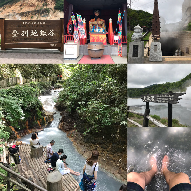 私の夏休み④ 北海道  登別温泉地獄めぐり 大湯沼川の天然足湯♨ 洞爺湖から北斗で登別温泉へ。 タクシーで登別温泉に向かう中、 「今年はクマが多いですが?」と尋ねると 「そうなんだよー、たくさん出てるんだよ、このあたりー。」 「熊出没注意」の看板、あそこににも、ここにもあるてしよー」 見てみると道路沿いのバス停脇にその看板はありました🐻 やはりニュースで言っていた通り、今年はクマ出没が多いのですね。 10分ほどで登別温泉へ到着。 「このあたりはクマでないから安心して」とホッとするお言葉をいただいたので、安心して地獄巡りに出かけました。 地獄めぐりの中でも、私が行きたかったのは大湯沼川の天然足湯。 大湯沼から流れ出す温泉の川が、足湯に流れるまでにちょうどよい温度となります。川底の玉砂利がツボを刺激します。 鳥の鳴き声を聞きながら 自然の中で足湯につかる。 なんとも贅沢です。 ホテルへ戻る道では、団地の芝生で鹿が堂々と餌を食べていました🦌 しかし、登別というと私の中ではどうしてもドリフの歌が思い出され、 どこを歩いていてもあの歌がエンドレスで流れておりました💦 #北海道 #登別温泉 #地獄めぐり #大湯沼川足湯 #ホテルの方が #タオルを持たせてくれました