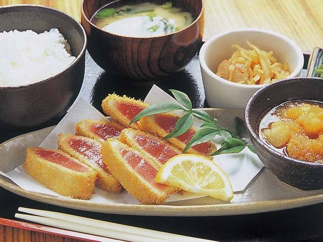 紀伊勝浦駅前にあるカフェのようなしゃれた店は女性に大人気。ジャズが流れる店内ではマグロはもちろん、旬の魚介や地元野菜をさまざまに工夫した料理が楽しめる。
