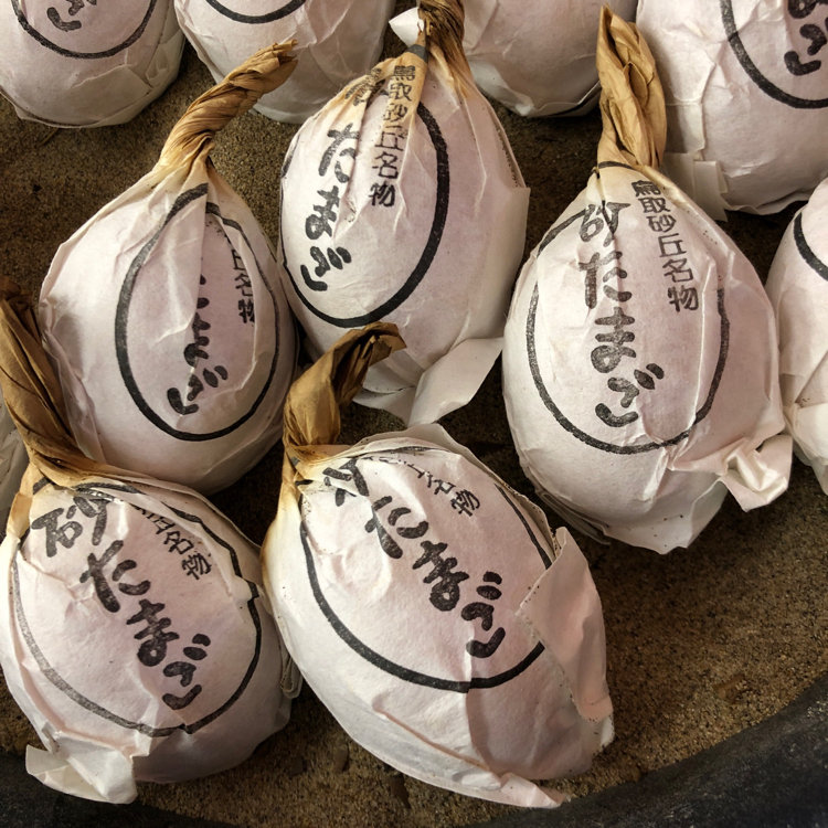 鳥取砂丘にいちばん近いドライブイン。砂丘らっきょうの佃「らっ佃。」と梨きんつばは砂丘会館限定商品で、砂丘らっきょうや砂丘長芋、砂たまごとともに人気がある。