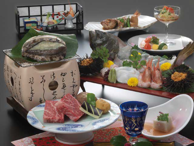 目の前に広がる日本海の眺望と季節の会席が愉しめる自家源泉が自慢の宿。