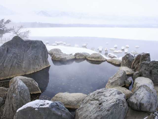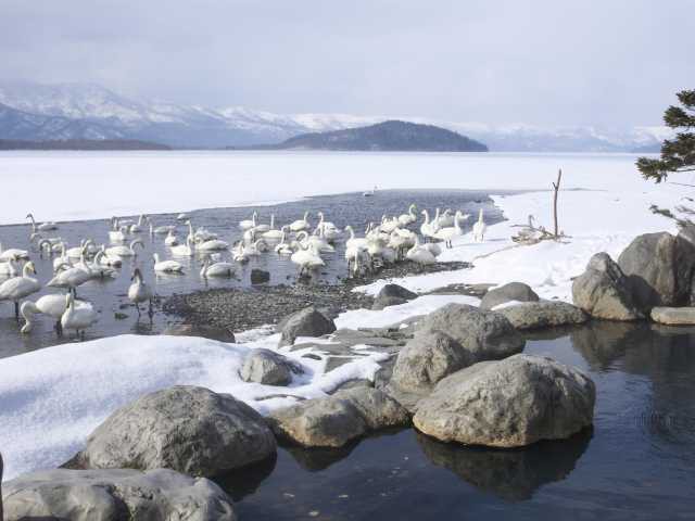 オオハクチョウも飛来する屈斜路湖を眺める温泉
