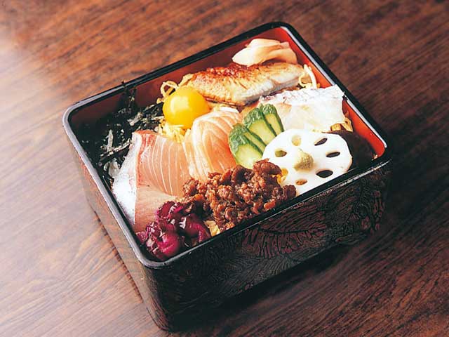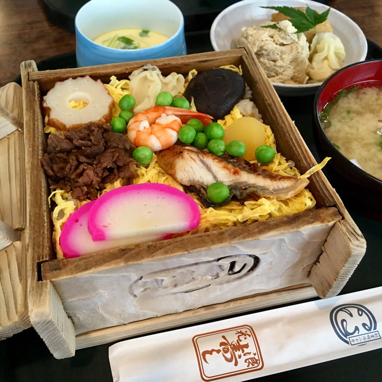 名物「むし寿司」は、初代店主の妻が「冬でも寿司を楽しんで」と考案したもの。シイタケ、タケノコなどを混ぜ込んだすし飯に、エビやウナギ、牛肉甘露煮、玉子などをのせて蒸し上げ、アツアツのままテーブルへ。具だくさんのすし飯をほおばってみたい。