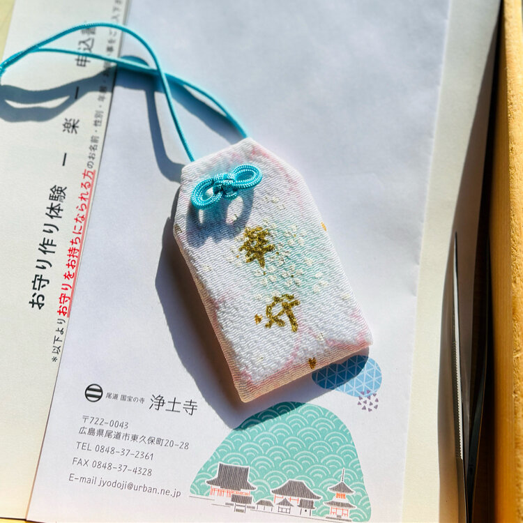 *しあわせ守り-楽-* 初詣は浄土寺へ上がりました。 念願のしあわせ守り作り体験へ。 まずはお守りの素材を集めます。 ・内札  身体健康、学業成就、良縁成就、心願成就  の4種類から選びます。  健康が資本と「身体健康」に。 ・お守り袋  机の上に200種類ほど並んだお守り袋。  全部違って迷います。  でも直感で気に入ったのにしようと  選んだのは白地に桜模様。  うっすら水色が入っているのが決め手でした。 ・紐  桃・赤・白・黄・青から選びます。  一通り合わせてみて桃か青の二択に。  桃はちょっとかわいすぎたので  青にしました。 ・ 素材を集めたらお守り作りスタートです。 内札をお守り袋に入れて紐を通し 通した紐を括って形を整えると完成です。 完成したお守りを持って本堂へお参りした後 作ったお守りはお寺に預けます。 御祈願をしてもらい、後は郵送されるのを待つだけ。 20分もあれば体験できるので 尾道にお越しの際は是非体験してみてください。 詳しくはことりっぷさんの記事でご確認くださいね。 届いたお守りはまた次の投稿で。 #ご利益めぐり #私のことりっぷ旅 #尾道 #尾道さんぽ #七佛めぐり #浄土寺 #しあわせ守り #しあわせ守り作り #お守り #お守り作り