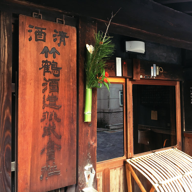 江戸時代からの銘柄「竹鶴」の醸造元で、ニッカウヰスキー創始者の竹鶴政孝の生家でもある。みやげには「小笹屋竹鶴生もと純米原酒」がおすすめ。