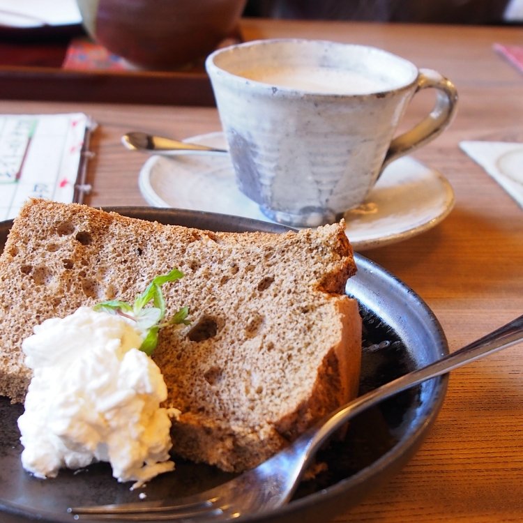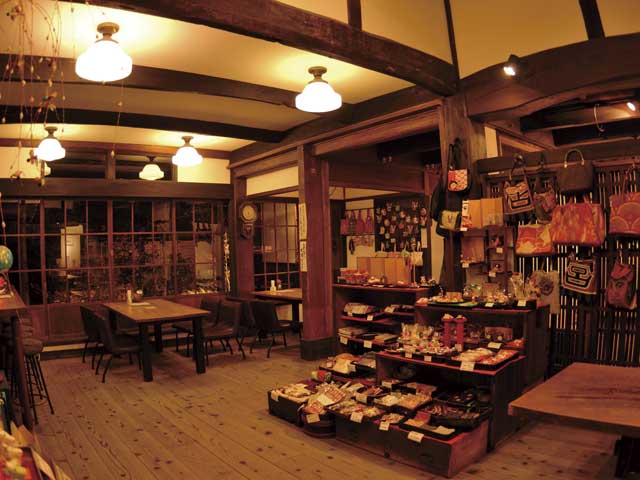 宮島のなごみカフェの草分け的存在の店。骨董品や小物雑貨を販売するコーナーの奥にカフェスペースがある。ふんわり&しっとりの自家製シフォンケーキもオススメ。ギャラリースペースも併設する。