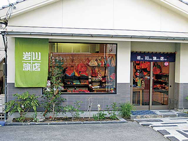 漁師たちが使う大漁旗を素材に、オリジナルデザインのバッグ、シャツ、ぬいぐるみなどを制作、販売する店。鯛や富士山のおめでたい柄に赤や黄など大胆な色彩が華やか。