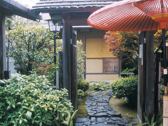 庭木が茂る坪庭を眺めながら、茶室や縁側で一服できる茶処。茶道家である主人が点てる抹茶は格別の味わい。希望すれば、三輪休雪や坂高麗左衛門など有名作家の萩焼で抹茶をいただける(プラス200円)。