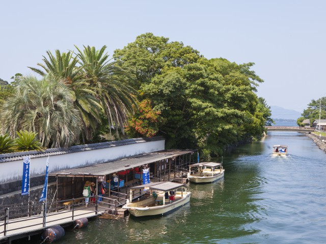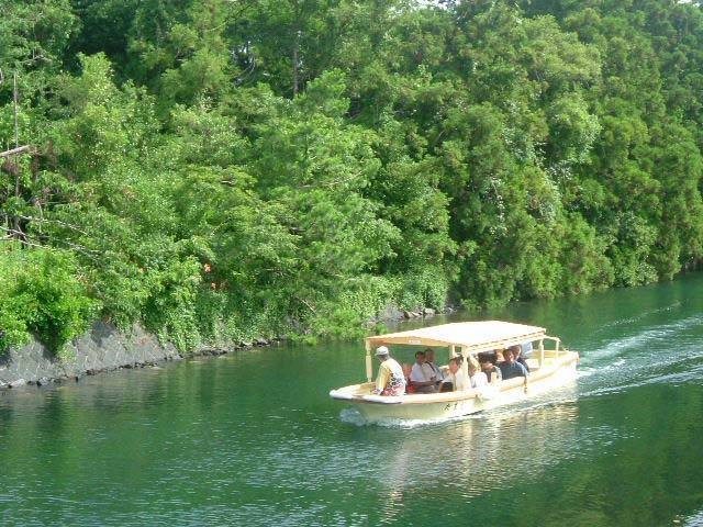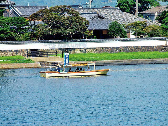 指月橋そばからスタートし、堀内や平安古の伝統的建造物群保存地区、旧田中別邸、萩八景の玉江などをめぐる約40分のコース。天候の良い日は銃眼土塀や萩城跡潮入門跡、菊ケ浜を海から眺めるルートも加わる。春には桜観賞コースも運航する。