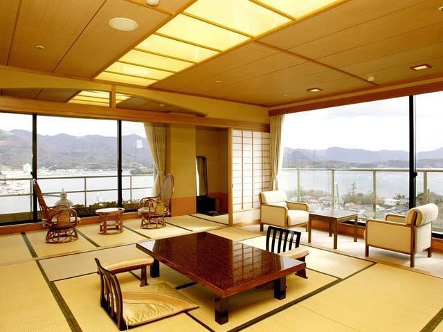 日本海を眼前に見晴らす抜群ロケーション。展望露天風呂に浸かりながら見る朝焼けの美しさに心潤わされ、膳を彩る日本海の幸に心躍らされる。和を基調とした極上のしつらいがくつろぎのひとときを演出。