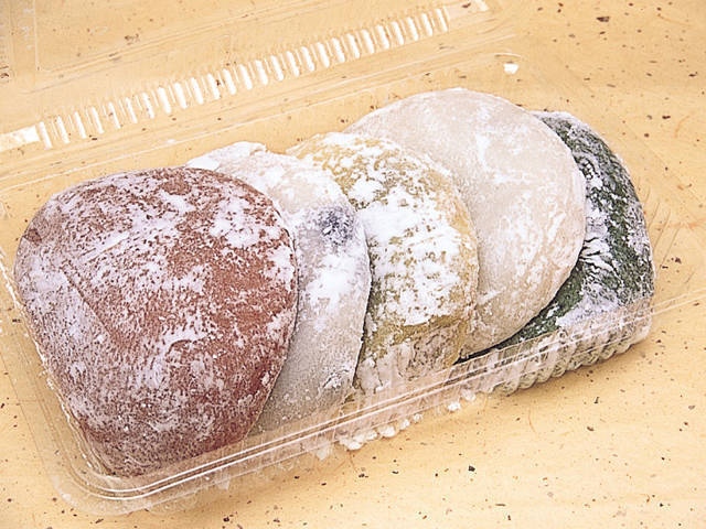 創業100年を超える老舗店。6代目の店主が昔ながらの製法で伝統の味を守る。のびのよいあん餅は自家製餡が入り、白、ヨモギ、キビ、アワ、黒豆の5種類がある。