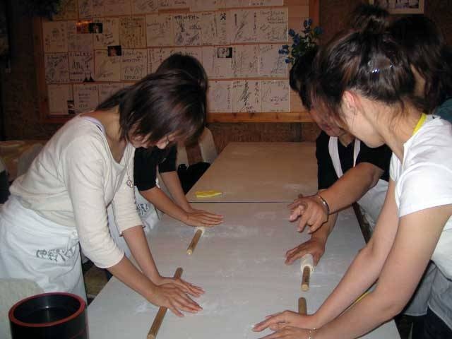 うどん作りのベテランの指導のもとでうどんをこねる作業から試食までのひと通りの工程を体験。所要時間は45分から1時間20分ほど。お持ち帰りもできる。