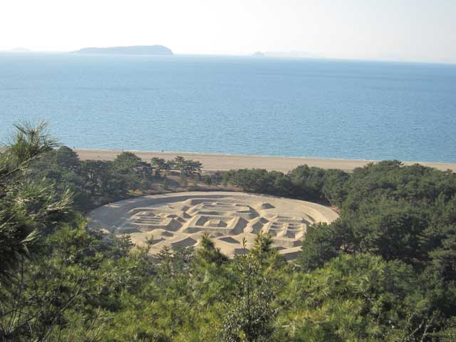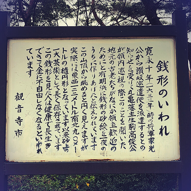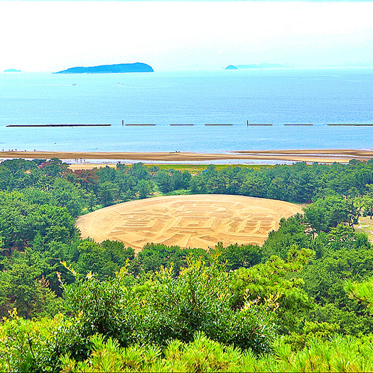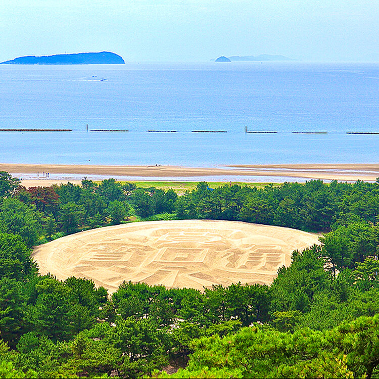 白砂青松の美しい景観で知られる公園で、桜やツツジの名所。根上がり松をはじめ希少な形の松や海浜植物が楽しめる。琴弾山山頂展望台から眺める、東西122m、南北90m、周囲345mの巨大な銭形砂絵は圧巻。