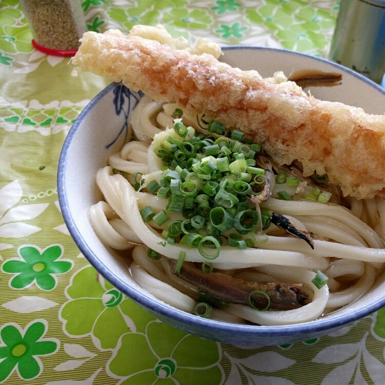 宮川製麺所 香川と言えば讃岐うどん こちらへは初めてで少し薄暗い店内へ入ると メニューは?注文はどうするのかな?なんて思う間もなく いきなり 「はい!とにかく奥まで進んできてくださいね!」 何がなんだか分からないうちに 「先にお箸取って〜」「割っといてくださいよ!」 「それからどんぶり持ったら向こうに大か小か言ってね!」 「え、、ととりあえず小でおねがいします」 「温めるならわき湯に5秒つけて、そこの大鍋のいりこ出汁かけて」 「冷ならそのままそこでぶっかけのお出汁もらって」  私は5秒温めて大鍋のいりこがいっぱい入ってるお出汁をすくってかけ 生姜(自分ですります)と刻みネギ、 トッピングの天ぷらは たまご、季節の野菜(こんぴらのタケノコ)タコ、 油あげから選んで 自分でのせて 空いてる席に座って食べます。 外で食べてる人もいます。 お水はもちろんセルフ 食後は流しへおどんぶりを返して 割り箸はゴミ箱に お会計は最後に自己申告で。 あっという間にの出来事でした笑笑 以前、香川に来たときには 「ネギは裏から採ってきて自分で切って〜」なんていう讃岐うどん屋さんに行きましたが笑 今回もディープで面白い讃岐うどん体験ができました🎶 #私のことりっぷ旅 #香川県#うどん県#讃岐うどん#宮川製麺所#セルフうどん#レトロな街