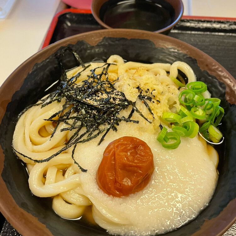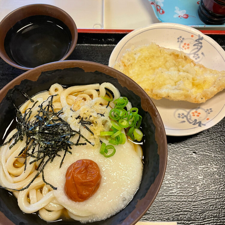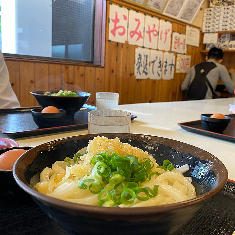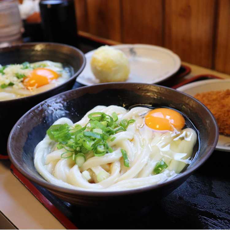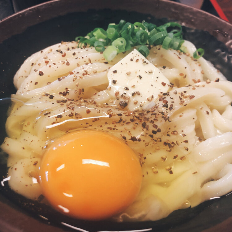 讃岐うどんを食べたことがない友人を連れてオールスターでうどんツアー④ 【釜玉代打】うどんバカ一代さん😊 場所は変わって高松市。釜玉代表とするなら発祥地とされ山越ブラックホール(前を走る車が行列を見て駐車場に吸い込まれていく)の異名を持つ山越うどんさんですが(山越さん語りたいけど我慢します😂)うどんツアー初体験の友人はたった3軒でお腹膨れたとかいい出します😳 うどんツアーでは密集地の西讃と中讃で多くの店が閉店する14時までに最低4軒、そのあと高松か東かがわで行くか無難に山田屋かおき泉ってのが安定ルートなんやけど😮 しかし大事な数少ないお友達なので「せっかくやから金比羅山行ってから高松の店に行こうか」優しくこちらの店を提案💁 ちなみに香川素人の友人には「金比羅山はこの先は何もないよ🙂」とやさしい嘘をついて表参道の足湯行っただけ。あとはお土産屋さん巡り😊うまくいったぜ さて、車で1時間ぐらいでしょうか高松に来ました🚗💨 10年ほど前に突如としてあらわれ釜玉バターという武器で激戦区高松で一世風靡したこのお店。手打十段うどんバカ一代さん。 今もかなりの行列ができる店😳 その味はうどんのカルボナーラと言われ早朝営業してることから1軒目にうどん戦士たちが集まり口コミで人気爆発したお店です。 店主はうどんバカを自認しており昨日より今日、今日より明日はおいしいうどんにしたいと続けてきた結果です😆すごいね 梅うどんもおすすめですがまずは釜玉バターをお食べください♪ #あきらの四国 #あきらの麺類