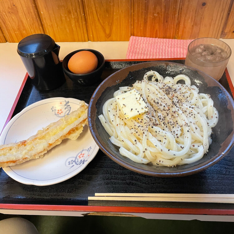 手打十段 うどんバカ一代さん🥢 : 高松港へ戻り、早めの夕食へ🚗 伺ったのは『うどんバカ一代』さんです! 彼が美味しくて有名なうどん屋さんを調べたら、こちらのうどん屋さんをよく見かけたとのことで、彼の希望で来ました✨ もちろんことりっぷ香川にも載っていたので、美味しいことは間違いない! : 行列が絶えないという情報を見て行ったのですが、16時前でとっても微妙な時間。 さすがにそんなに混んでいないだろうと思って行ったら…行列でした😳 お店まで40〜50mは並んでいたと思います! 回転は早そうでしたが、それでも席に着いて食べ始めるまで1時間くらいかかりました! 本当に大人気のお店なんですね💡 : 頼んだのは『釜バターうどん』という、バターと卵をかき混ぜていただくと、カルボナーラのような味わいになるおうどん🥢 今年に入り、生卵を食べると胃が痛くなってしまうことが多かったので、私は卵なしで本物の釜バターうどんをいただきました。 釜揚げされてすぐのおうどん、あったかもちもちで小サイズでも満足できちゃう😋 醤油とバターだけでも美味しかったから、卵も混ぜ混ぜしていたら絶対にもっともっと美味しくなるはず✨ 彼曰く、「本当にカルボナーラみたい!」とのことでした😊 卵割った写真を撮らせてもらったけれど、見事に割り方失敗していました(笑) バターはあっという間に溶けちゃいました。 うどん県のおうどんは本当に最高です🙌 : 📷:2023.7.16 Sun. : #私のことりっぷ旅 #カメラ旅 #うどん #おうどん #人気店 #大行列 #釜バターうどん #カルボナーラうどん #美味 #milkのミルキーな毎日