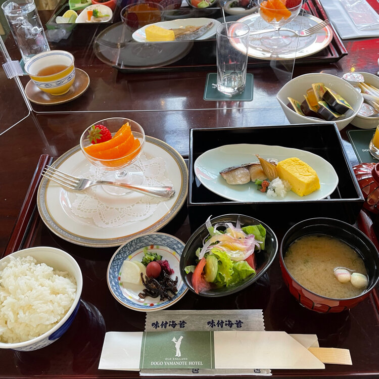『オールドイングランド道後山の手ホテル』🧸 ことりっぷ愛媛高知ドライブ旅🚙 山の手ホテルの朝食は 嬉しい洋食と和食が選べます🍴🥢🥰 温泉の朝はご飯がいいと 2人とも和食を選びました。 朝は「飛鳥乃温泉」に行って朝風呂をしたので 9時過ぎのゆっくりの朝食です。 もう人も少なかったので テラスのそばのお席に案内されました。 この日もいいお天気で テラスにはかわいい子が😍🧸 一緒にお食事しているような気分です💕 和食は箱膳に入れられて とても綺麗で量もほどほど とても美味しくいただきました。 食後の珈琲も嬉しかったです。 レストランも素敵な家具で 夜はこちらで 道後温泉では珍しい フレンチが食べられます。 娘との旅は基本朝ゆっくりになるのですが 長距離の運転をしてくれているので 朝温泉に入ってゆったりできて よかったです☺️ ホテルはチェックアウトも12時と 遅いのでそのまま 商店街にも出かけました♪ ・ ・ #クラシカルな街 #秋の彩り #ことりっぷ愛媛高知ドライブ旅 #瀬戸内海を渡る旅 #四国へ #オールドイングランド道後山の手ホテル #道後山の手ホテル #クラシックホテル #ホテル #レトロ #アンティーク #テディベア #朝食 #モーニング #ホテルモーニング #和食 #和朝食 #道後温泉 #温泉 #松山 #愛媛 #愛媛県 #四国 #ことりっぷ愛媛 #ドライブ #母娘旅 #旅のごはん