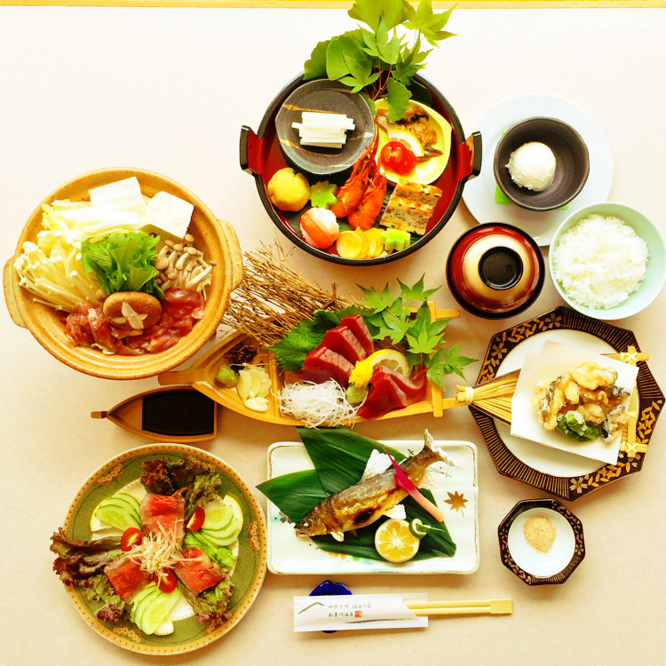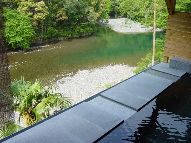 四万十川の源流、深い緑に包まれた日野地川渓谷に建つ宿。アルカリ度の高い自家源泉は江戸時代からの名湯で、温泉ファン垂涎のとろりとした湯ざわり。渓谷美を望む露天風呂でリラックスしたあとは、四万十の美味を盛り込んだ会席料理に舌鼓を。
