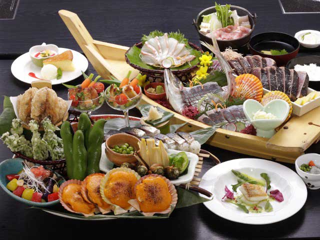鰹のタタキなど海の幸、山の幸豊富な高知の食をお楽しみください。