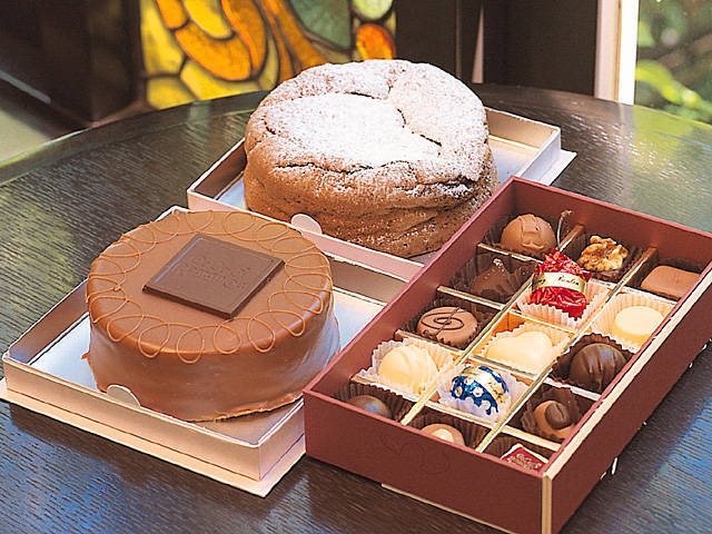 チョコレート中心の菓子専門店。ショーケースに並ぶひと口サイズのトリュフは、ミルク、ホワイト、スイートなど47種類。チョコレートは72時間煉り込んだもの。