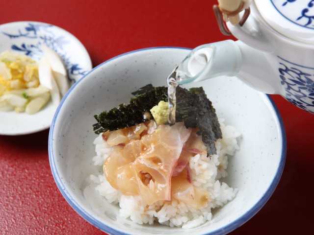 魚料理がメインの和食の店。呼子のイカ、佐賀関の関サバ、関アジなど産地から直送した魚介が味わえる。名物は、特製のタレに漬けた鯛茶。フグセットもある。