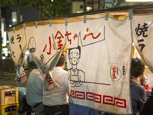 毎夜のごとく行列をなす人気店。屋台グルメの定番となった焼きラーメンを考案するほどの研究熱心さと、初代の人柄を受け継ぐ二代目マスターの人柄が人気の理由。