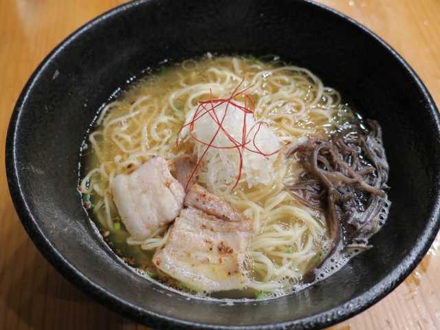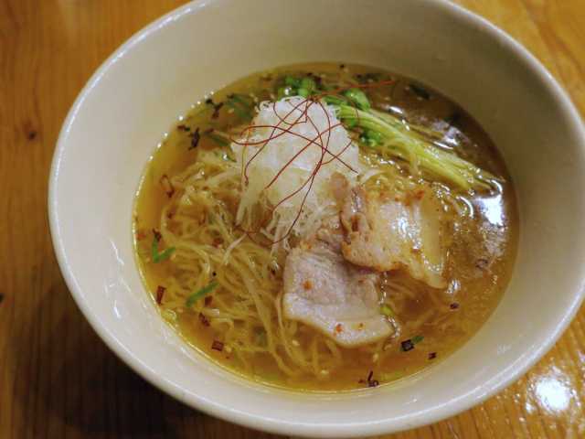 厨房と客席が向かい合う劇場型の造り。ラーメンは、干しアワビや干し貝柱など高級食材でつくる醤油が、スープに深みを与えている。東京都広尾にある完全予約制の支店「GENEI.WAGEN」も話題。